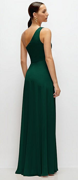 Chiffon One-Shoulder Maxi Dress with Circle Skirt in hunter green