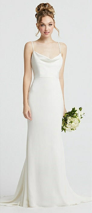 Cowl-Neck Wide Strap Crepe Trumpet Gown with Front Slit in sky blue