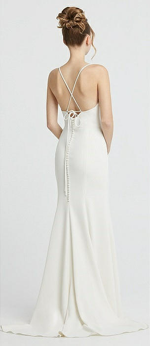 Criss Cross Halter Open-Back Stretch Satin Mermaid Dress in olive green