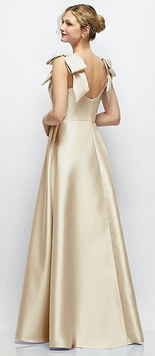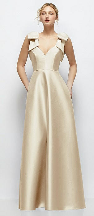 Deep V-Neck Satin Ball Gown with Shoulder Bows in champagne
