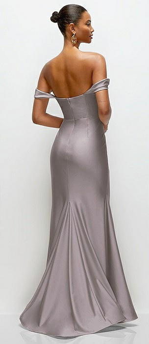 Off-the-Shoulder Corset Stretch Satin Mermaid Dress with Slight Train in cashmere gray