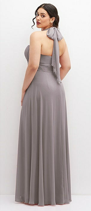 Chiffon Convertible Maxi Dress with Multi-Way Tie Straps in cashmere gray