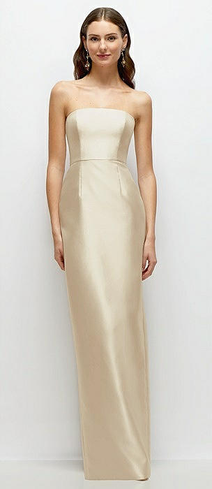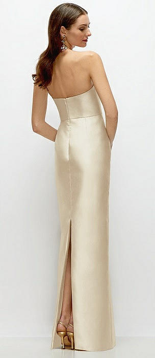 Strapless Satin Column Dress with Back Slit in champagne