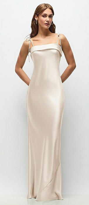 Cuff Neck Satin Bias Maxi Dress with Self-Tie Spaghetti Straps