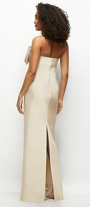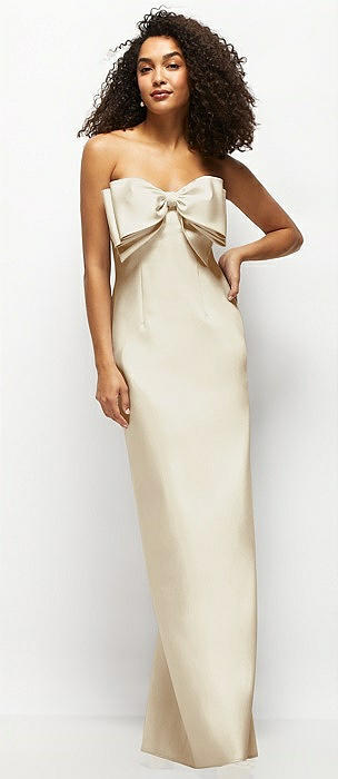 Strapless Satin Column Maxi Dress with Oversized Handcrafted Bow in champagne