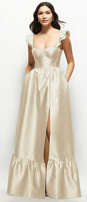 Satin Corset Maxi Dress with Ruffle Straps & Skirt in champagne