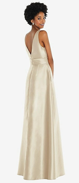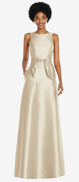 Sleeveless Square-Neck Princess Line Gown with Pockets in champagne