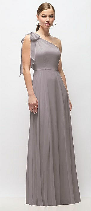 Draped One-Shoulder Maxi Dress with Scarf Bow in cashmere gray