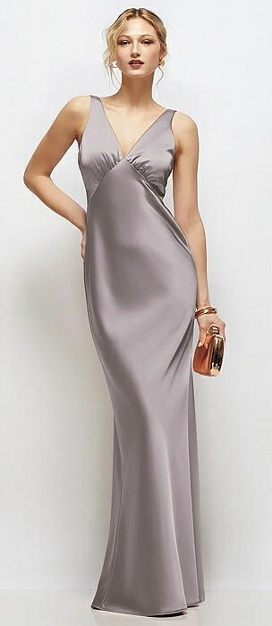 Sleeveless V-Neck Stretch Satin Bias Slip Maxi Dress in cashmere gray