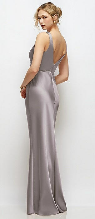 Scoop Neck Draped Column Stretch Satin Maxi Dress in cashmere gray