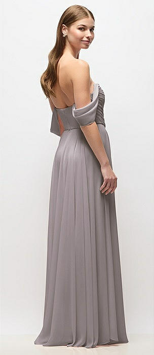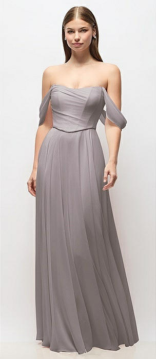 Off-the-Shoulder Basque Corset Chiffon Maxi Dress in cashmere gray