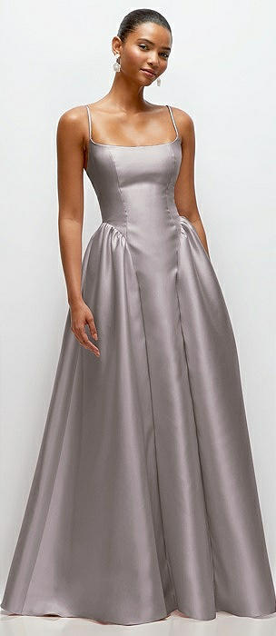 Scoop Neck Drop Basque Skirt Satin Maxi Dress with Pockets in cashmere gray