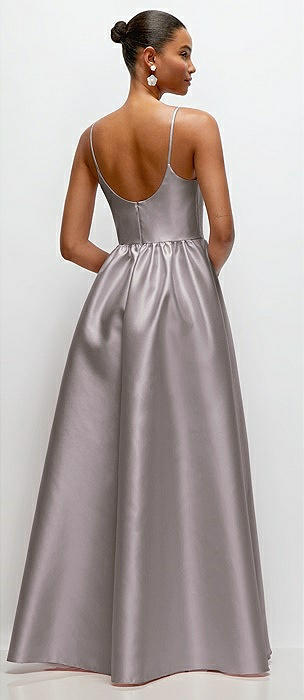 Open Neckline Cutout Satin Twill A-Line Gown with Pockets in cashmere gray