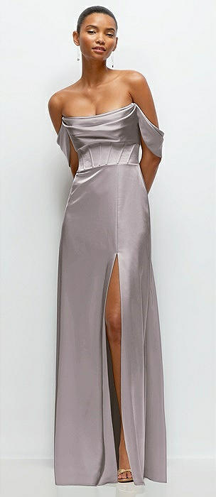 A-Line Satin Maxi Dress with Convertible Off-the-Shoulder or Strapless Looks in cashmere gray