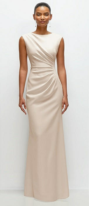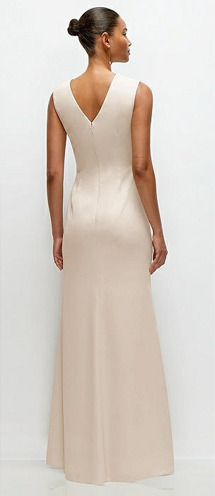 Sleeveless Cap Shoulder Crepe Maxi Dress with Trumpet Skirt in oat