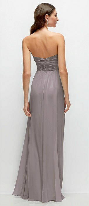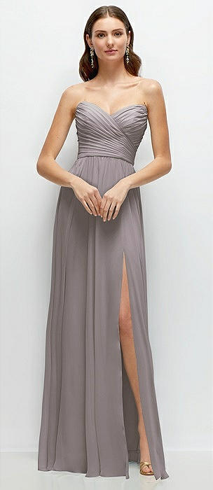 Strapless Pleated Surplice Chiffon Maxi Dress with A-Line Skirt in cashmere gray
