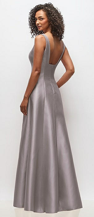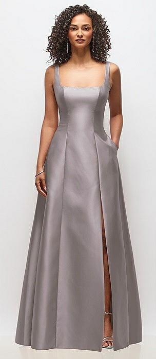 Sleeveless Square-Neck Princess Line Gown with Pockets in cashmere gray