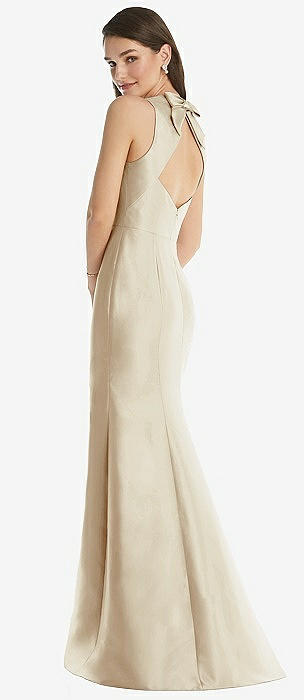 Sleeveless Satin Trumpet Gown with Bow at Open-Back in cameo