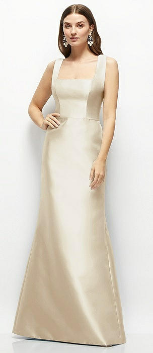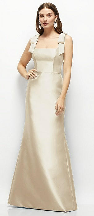 Bateau Neck Satin Column Maxi Dress with Exaggerated Tail Bow Straps in champagne