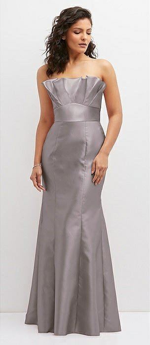 Strapless Satin Fit and Flare Dress with Crumb-Catcher Bodice in cashmere gray
