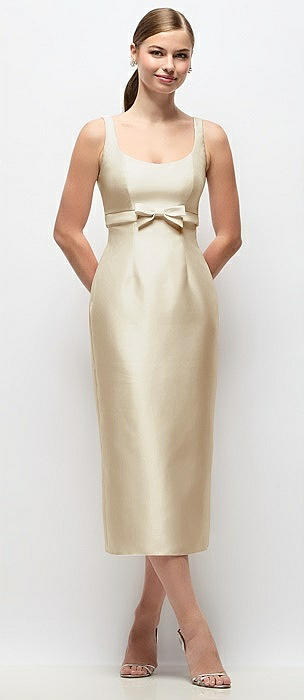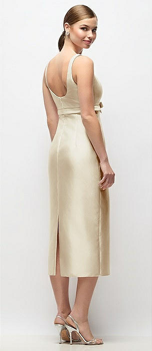 Strapless Cuff Satin Midi Dress with Column Skirt & Back Bow in champagne