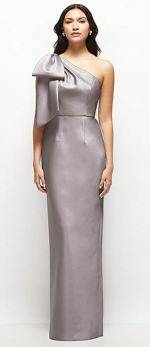 Bow One-Shoulder Satin Trumpet Gown in cashmere gray