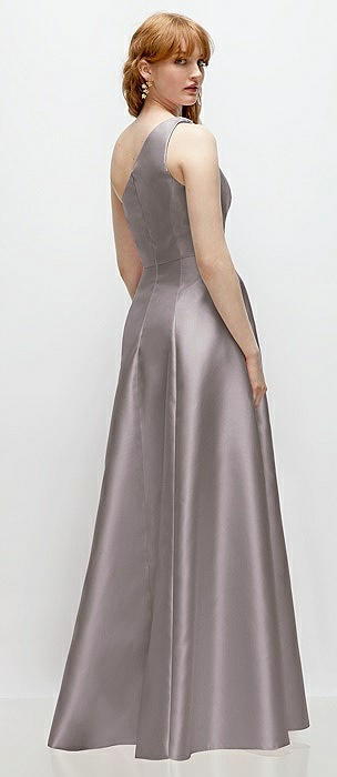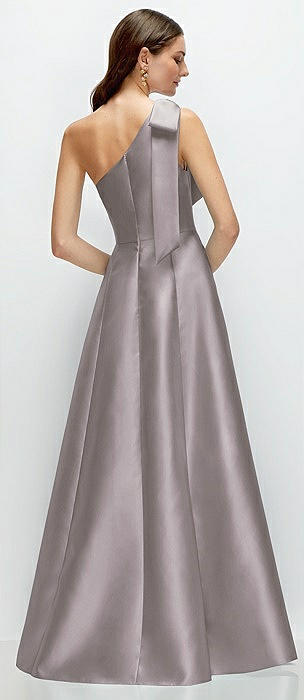 Bow One-Shoulder Full A-Line Satin Maxi Dress in cashmere gray