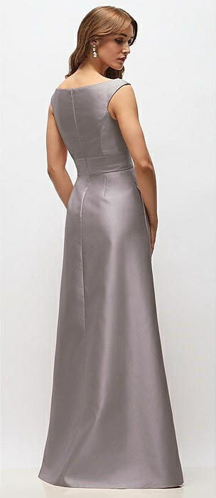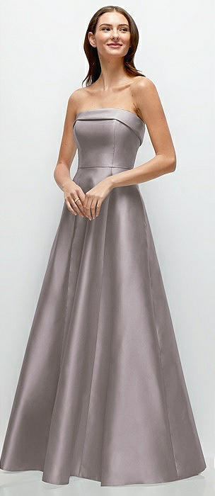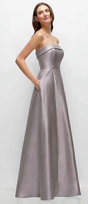 Strapless Bias Cuff Bodice Satin Gown with Pockets in cashmere gray