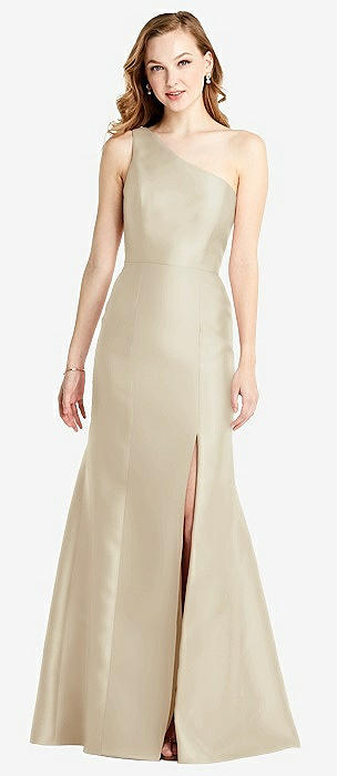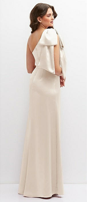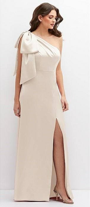 One-Shoulder Satin Maxi Dress with Chic Oversized Shoulder Bow