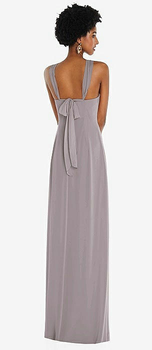 Draped Chiffon Grecian Column Gown with Convertible Straps in cashmere gray