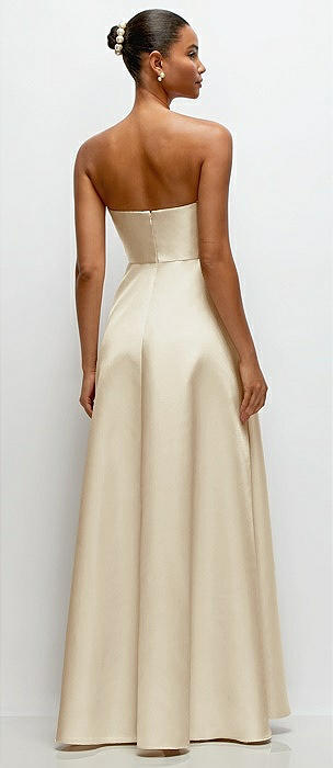Strapless Draped Cat-Eye Satin Maxi Dress with Full Skirt in champagne