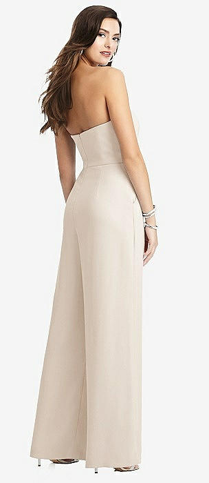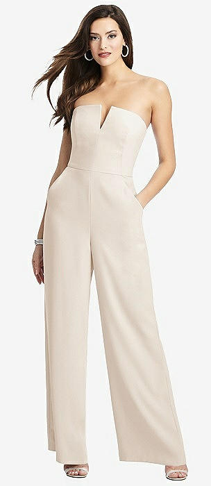 Strapless Notch Crepe Jumpsuit with Pockets in oat
