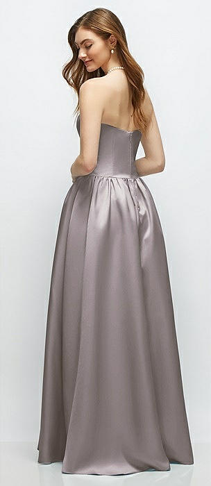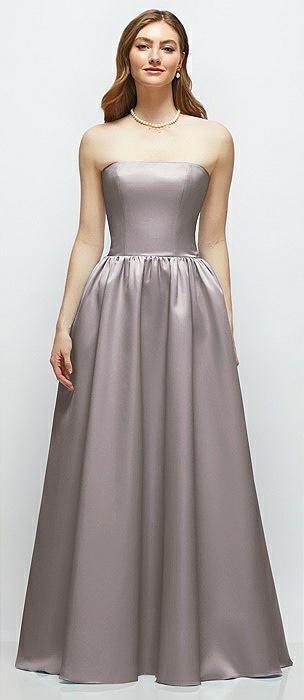 Strapless Satin Drop Waist Gown with Full Skirt in cashmere gray