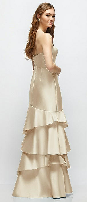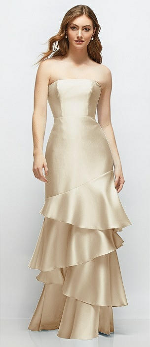 Strapless Satin Drop Waist Gown with Full Skirt in champagne