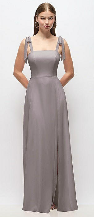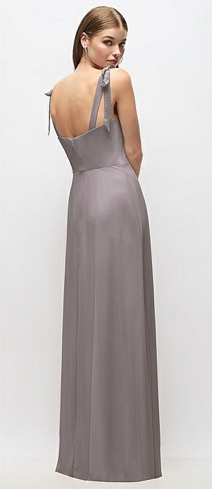 Tie-Shoulder Chiffon Maxi Dress with Front Slit in cashmere gray