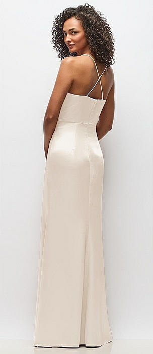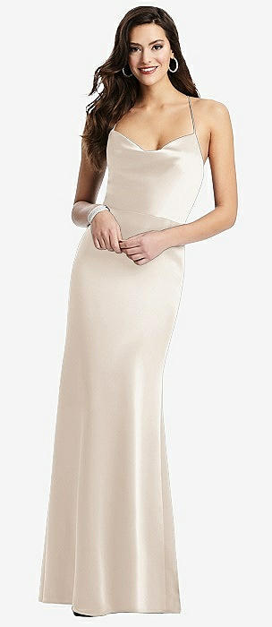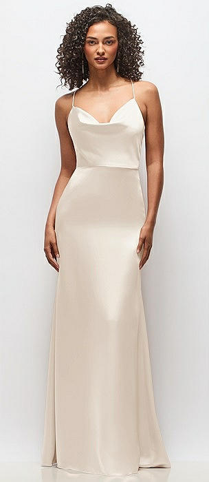 Cowl-Neck Criss Cross Back Slip Dress in oat