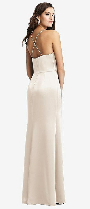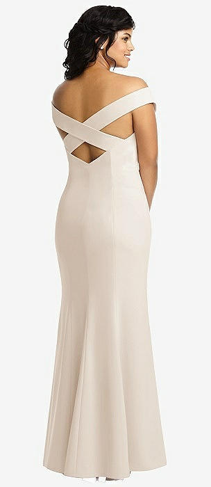 Off-the-Shoulder Criss Cross Back Trumpet Gown in oat