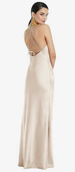 Diamond Halter Bias Maxi Slip Dress with Convertible Straps