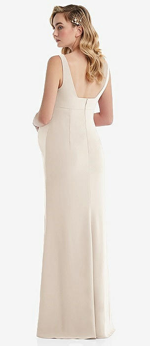 Wide Strap Square Neck Maternity Trumpet Gown in oat