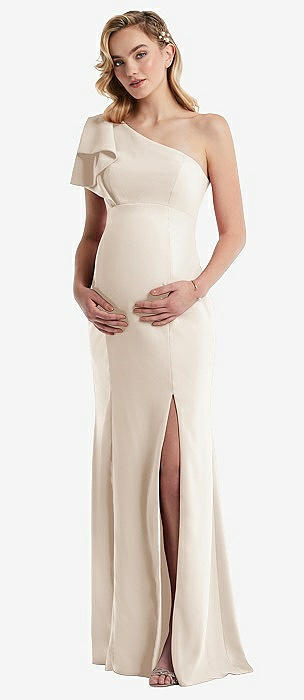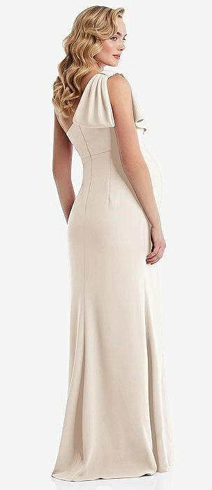 One-Shoulder Ruffle Sleeve Maternity Trumpet Gown in oat