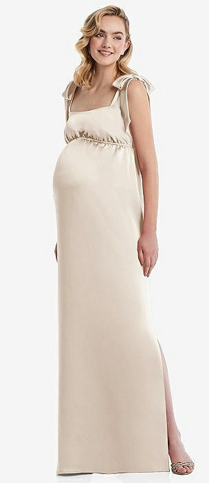 Flat Tie-Shoulder Empire Waist Maternity Dress in oat
