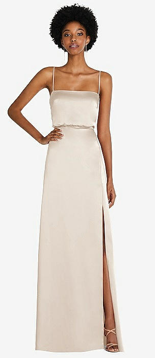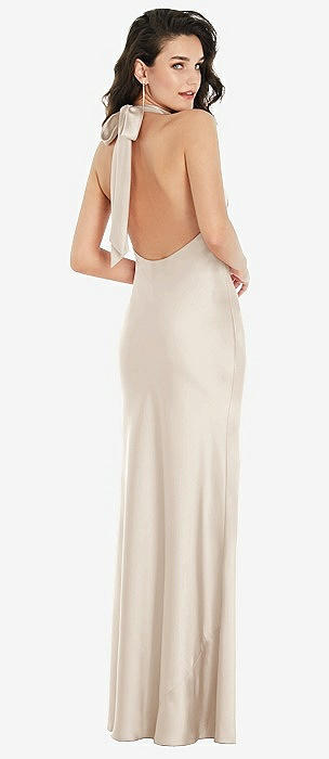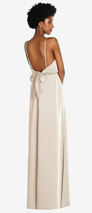 Low Tie-Back Maxi Dress with Adjustable Skinny Straps in oat