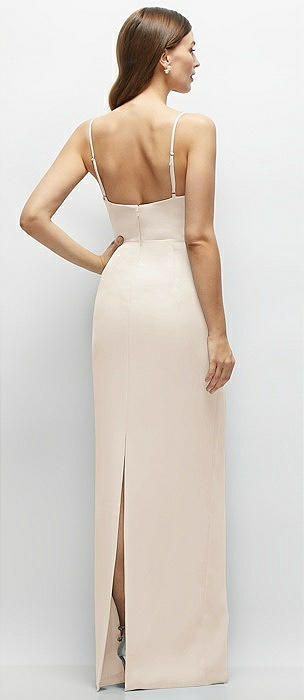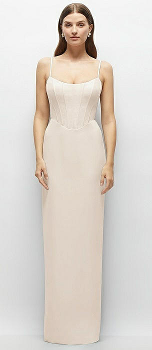 Corset-Style Crepe Column Maxi Dress with Adjustable Straps in oat