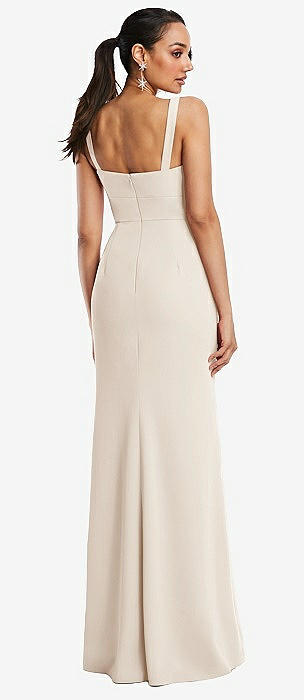 Cowl-Neck Wide Strap Crepe Trumpet Gown with Front Slit in oat