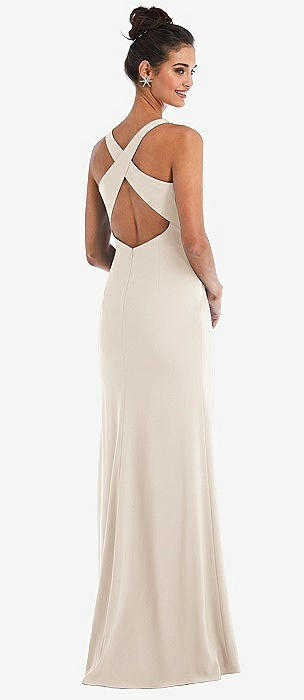 Criss-Cross Cutout Back Maxi Dress with Front Slit in oat