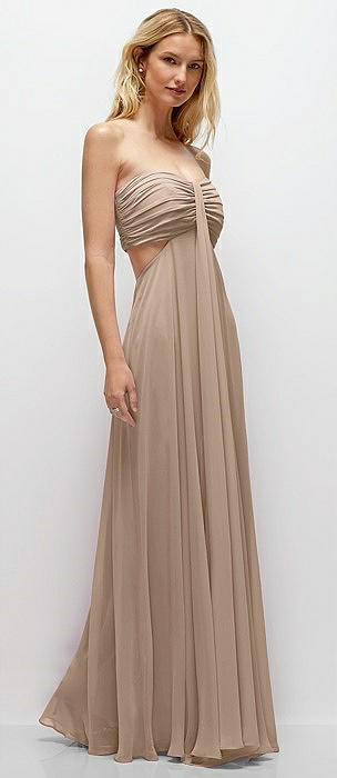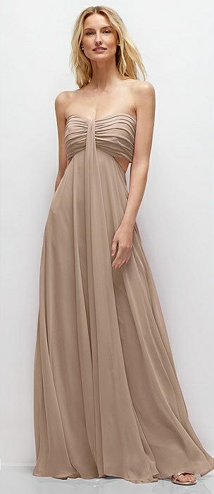 Strapless Empire Waist Cutout Maxi Dress with Covered Button Detail in topaz
