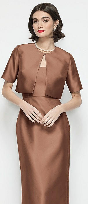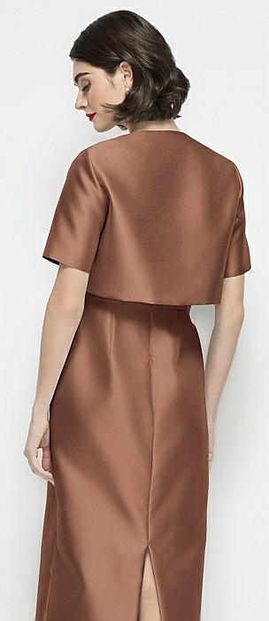 Jewel Neck Bowed Open-Back Trumpet Dress with Front Slit in cognac