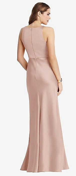 Sleeveless Satin Trumpet Gown with Bow at Open-Back in cameo