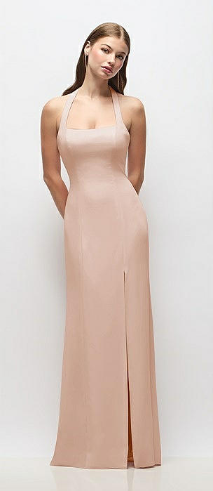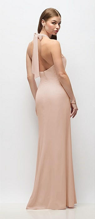 Tie Halter Open Back Trumpet Gown in cameo