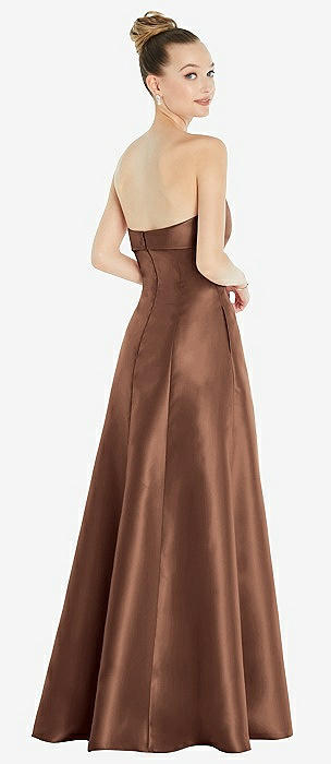 Off-the-Shoulder Bow-Back Satin Trumpet Gown in cognac